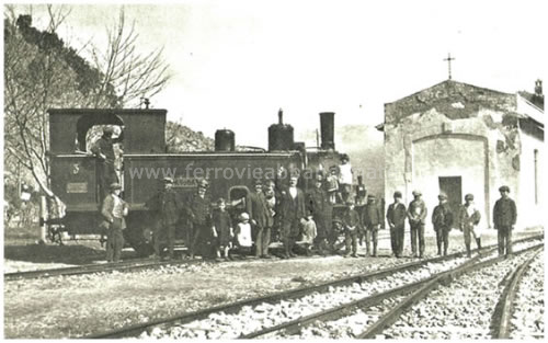 Foto ricordo alla stazione di Gairo, probabilmente nei primi decenni del '900 (archivio P. A. Marchese)