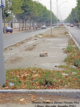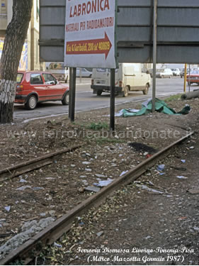 Ex-sedime abbandonato prima dell'attraversamento di via Cesare Battisti a Pisa (M. Mazzotta, 1989)