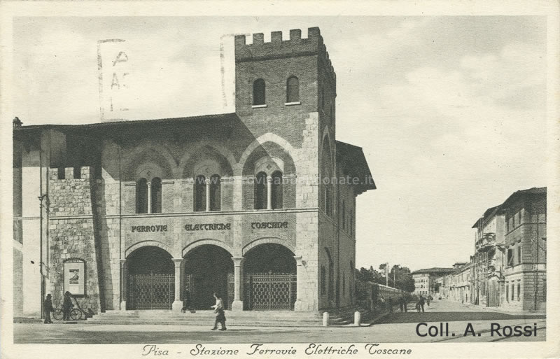 Cartolina d'epoca della stazione di Pisa (ACIT), capolinea della ferrovia per Livorno (collezione A. Rossi)