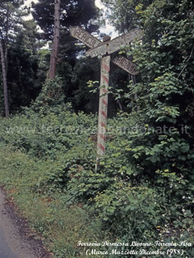 Resti di segnale stradale all’attraversamento del Vione Vannini a Tirrenia in direzione mare (M. Mazzotta, 1988)