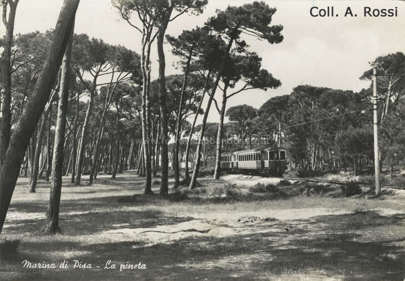 Altra immagine d'epoca del "Trammino" che attraversa la pineta di Marina di Pisa (collezione A. Rossi)