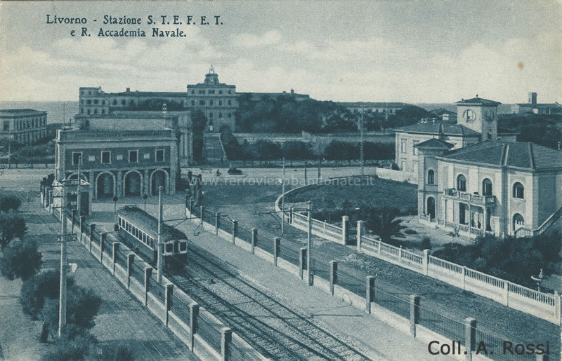 Cartolina d'epoca della stazione capolinea di Livorno Accademia Navale (collezione A. Rossi)