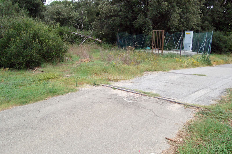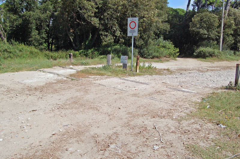 Ex-passaggio a livello con una strada rurale tra l'ex-stazione di Marina di Pisa e l'ex-fermata Bagni Arcobaleno (A. Rossi, 2014)