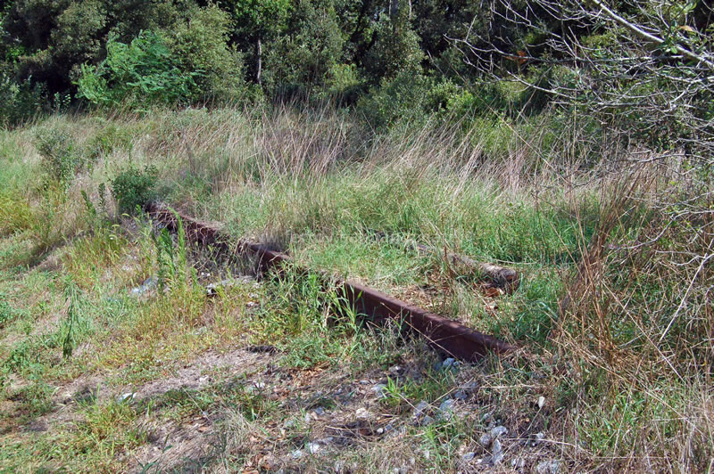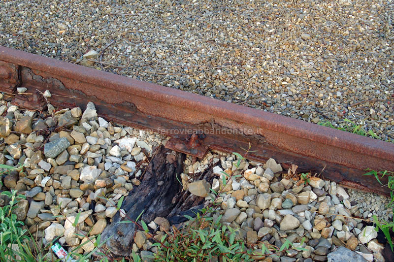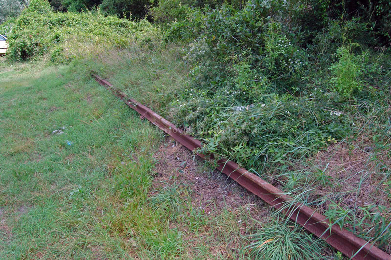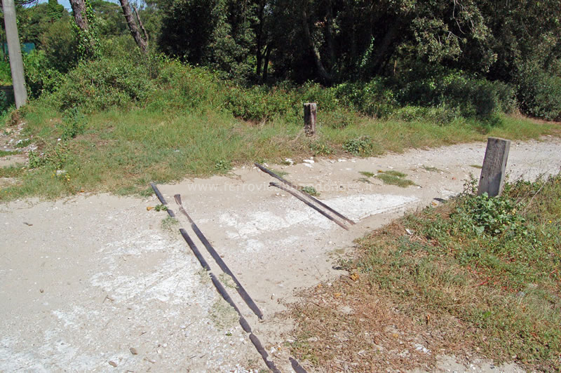 Particolare del binario ancora posato nei pressi dell'ex-stazione di Tirrenia (A. Rossi, 2014)
