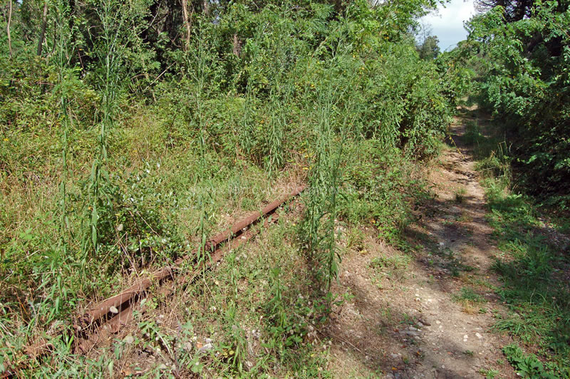 Rotaia che emerge dalla vegetazione nei pressi dell'ex-fermata Lido (A. Rossi, 2014)
