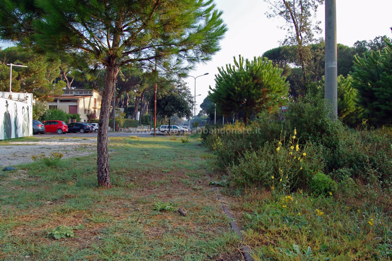 Ex-sedime trasformato in parcheggio lungo via dei Pioppi tra l'ex-fermata Via Alberi e l'ex-stazione di Tirrenia (A. Rossi, 2014)