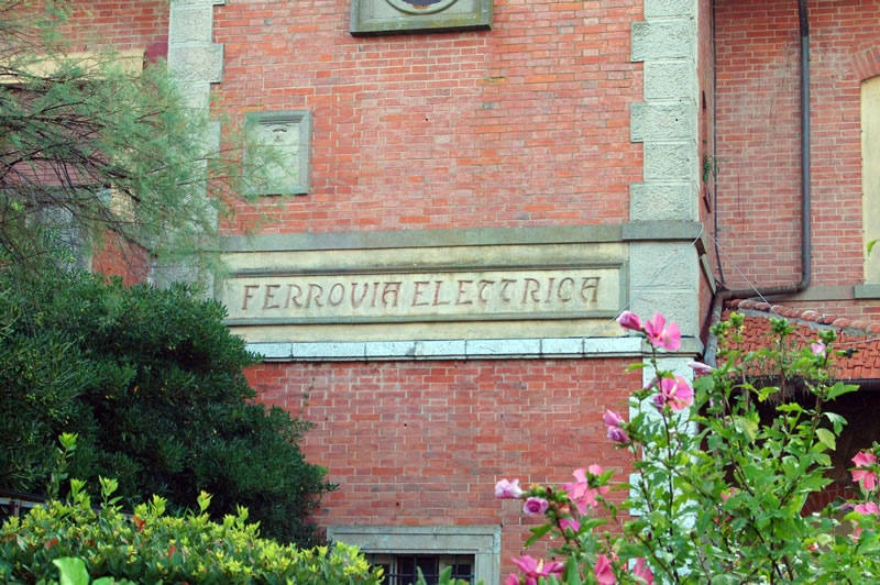 Particolare della ex-stazione di Tirrenia, con la dicitura "Ferrovia Elettrica" ben evidente (A. Rossi, 2014)