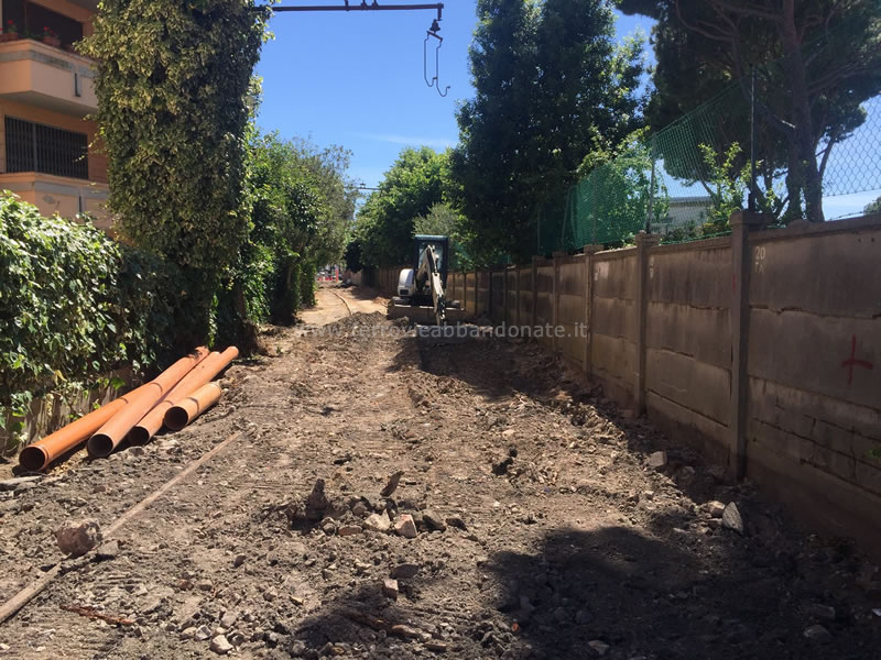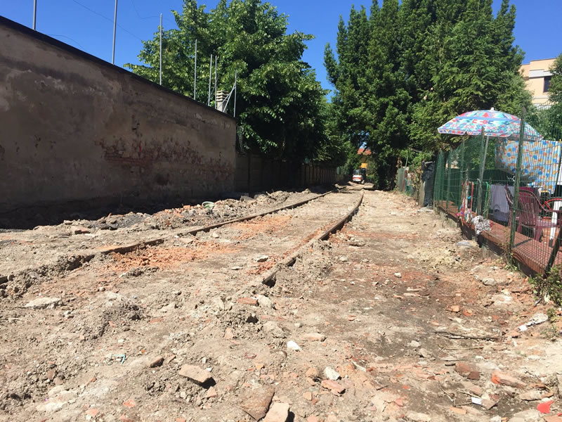Vecchio binario che riaffiora dal terreno durante i lavori di trasformazione in pista ciclopedonale tra via C. Fazio e via A. Moro a Pisa (A. Miggiano, 2016)