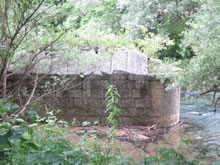 Pilone di sostegno di un ponte sull'Aniene, oggi crollato, nei pressi dell'ex-stazione di Marano Equo-Agosta (A. Stigliani, 2014)