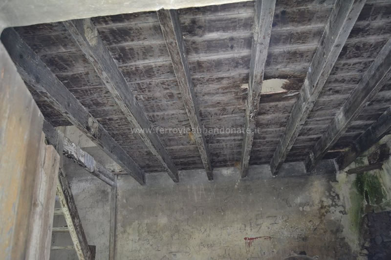 Particolare della struttura in legno del solaio del casello al km 5+510, tra Mandela-Sambuci e Anticoli Corrado-Roviano (M. Massimi, 2014)