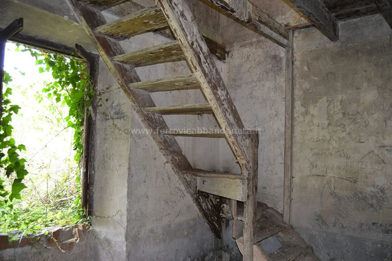 Scala interna in legno del vecchio casello al km 5+510, tra Mandela-Sambuci e Anticoli Corrado-Roviano (M. Massimi, 2014)