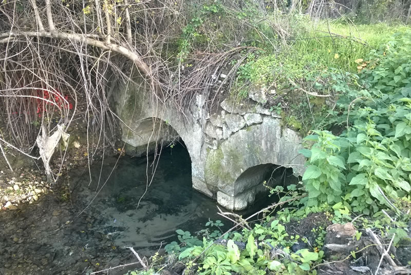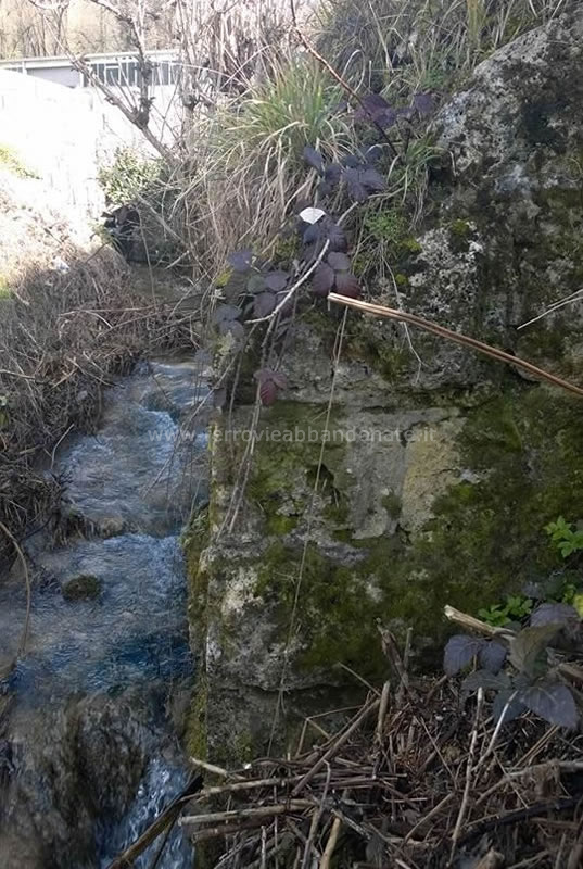 Vecchio ponte su un fosso di raccolta delle acque sorgive in località Peschiera, al km 13,1, tra le stazioni di Marano-Agosta e Agosta (M. Massimi, 2015)