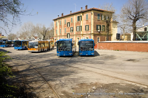 Ex-rimessa locomotive della stazione di Imola (SAF), oggi utilizzata come rimessa per gli autobus (R. Ceccarelli, 2012)
