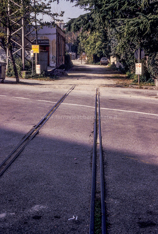 Binario che emerge dall'asfalto nel piazzale della ex-stazione di Imola (SAF) (G. Raffuzzi)