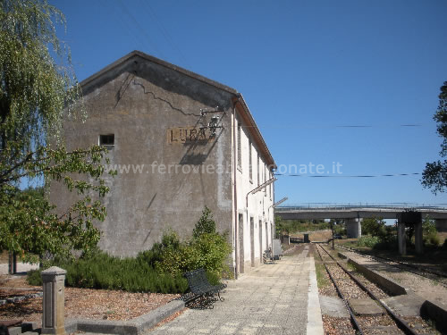 Stazione di Luras, con il fabbricato viaggiatori in stato di abbandono (R. Rovelli, 2010)