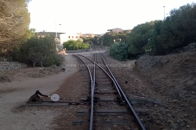 Binari affiancati in corrispondenza del regresso tra Palau e Palau Marina: a destra in binario proveniente da Palau, a sinistra quello diretto a Palau Marina (R. Russo, 2015)