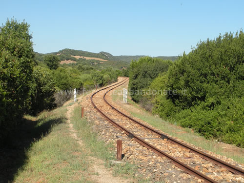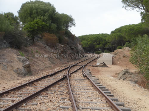 Binario tra le fermate di Oddastru e Capichera, utilizzato nei mesi estivi dai treni turistici (R. Rovelli, 2010)