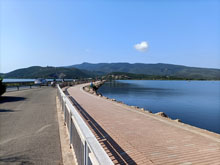 Ex-sede ferroviaria all'imbocco della diga di Orbetello, recuperata come percorso ciclopedonale (M. Pagnanelli, 2025)