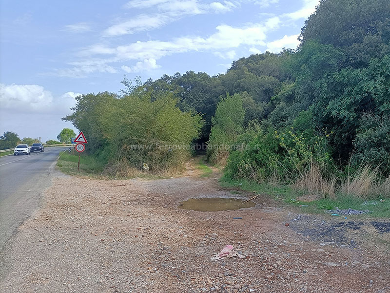 Vecchia sede ferroviaria accanto alla S.P. 161, tra la fermata di S. Liberata e l'imbocco est dell'omonima galleria (M. Pagnanelli, 2025)