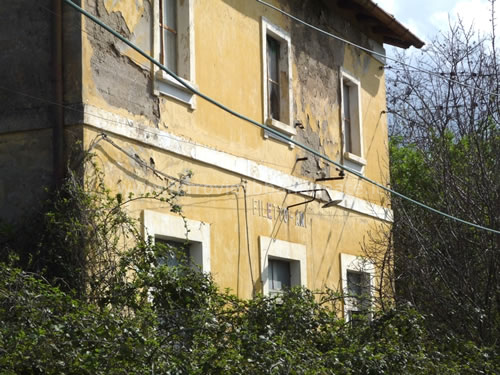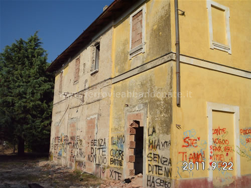 Fabbricato viaggiatori della ex-stazione di Crocetta, in rapido degrado (V. Palumbo, 2011)