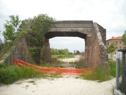 Resti del cavalcavia ferroviario in corrispondenza dell'incrocio con la ferrovia Treviso-Ostiglia a Piazzola sul Brenta (E. Martino, 2012)