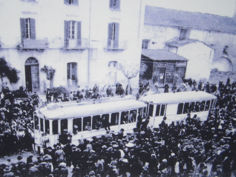 Immagine storica del viaggio inaugurale il 7 giugno 1915 (A. Stigliani, R. Pizzacalla, 2017)