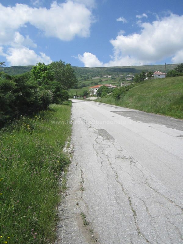 Tracce dell'ex-sedime ferroviario ai margini della carreggiata della S.P. Trignina, tra Pescolanciano e l'ex-fermata di Colle Meluccio (A. Stigliani, 2013)