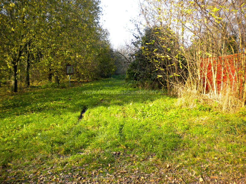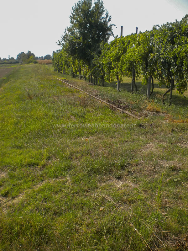Sede ferroviaria ancora riconoscibile, anche se invasa dalla vegetazione spontanea, nelle vicinanze di S. Matteo della Decima (A. Giordano, 2015)