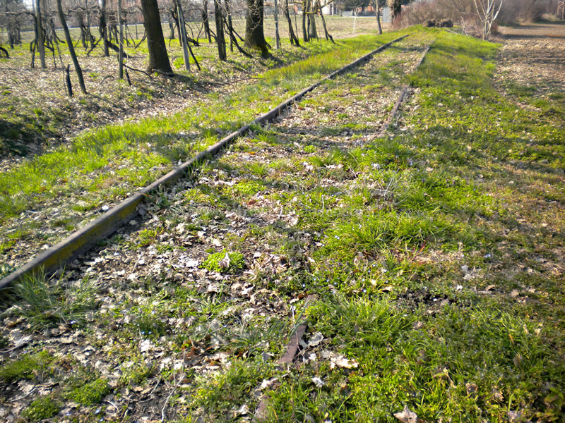 Rotaie che riaffiorano dal terreno nei pressi di Crevalcore (A. Giordano, 2015)