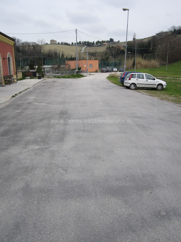 Piazzale della ex-stazione di Monteurano-Rapagnano, trasformato in parcheggio (A. Stigliani, 2015)