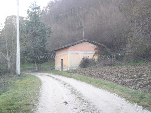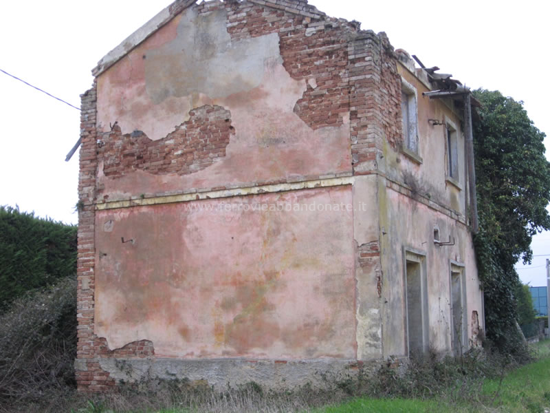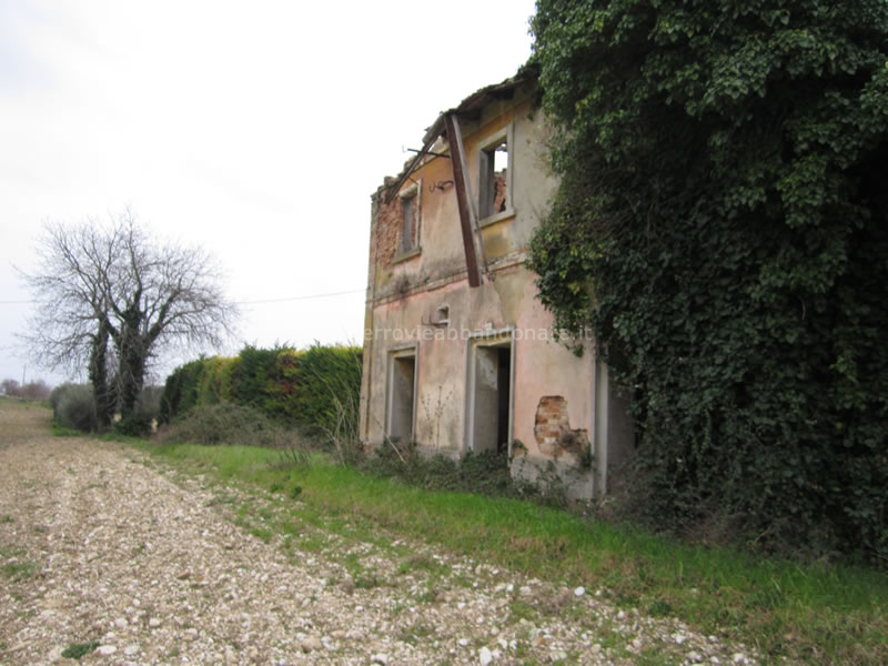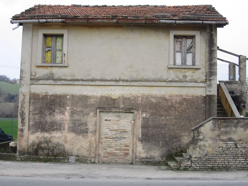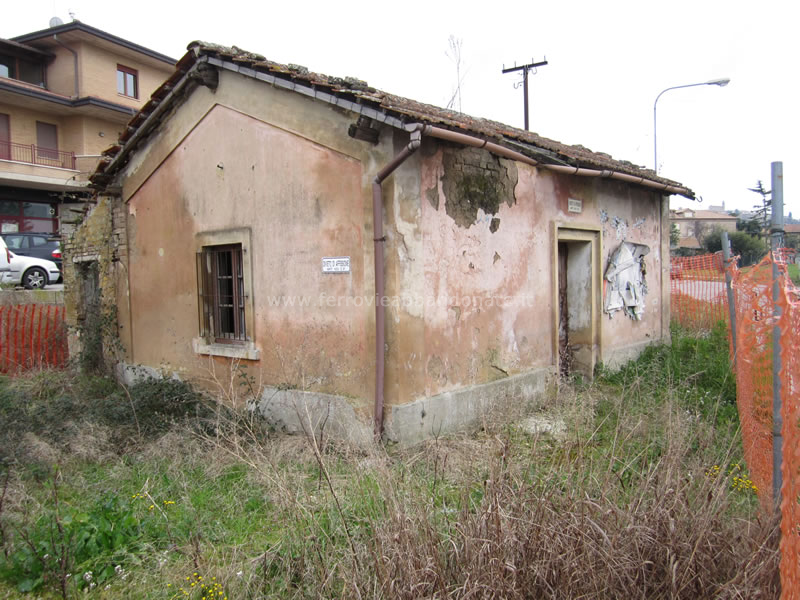 Fabbricato di servizio a custodia del passaggio a livello con l'attuale S.P. 60, nei pressi di Grottazzolina, in condizioni fatiscenti (A. Stigliani, 2015)