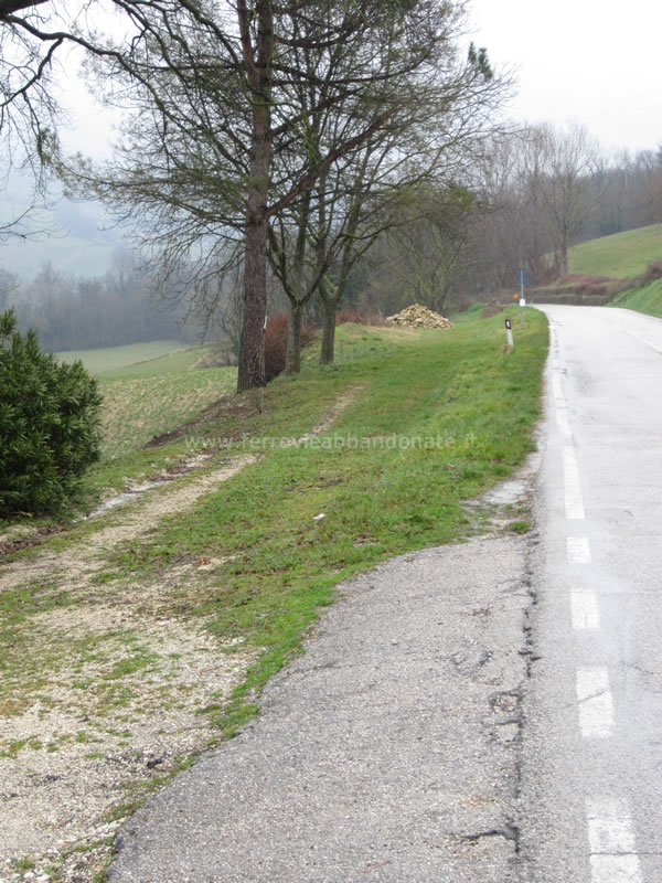 Ex-sedime ancora riconoscibile accanto alla S.P. 239 tra le ex-stazioni di Monte S. Martino e Montefalcone A. (A. Stigliani, 2015)