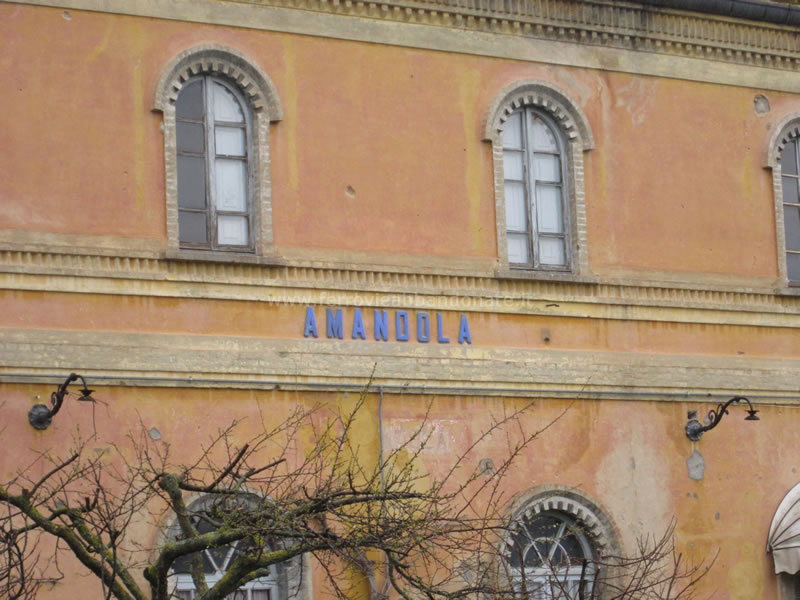 Particolare della ex-stazione di Amandola, con il nome ancora ben leggibile (A. Stigliani, 2015)
