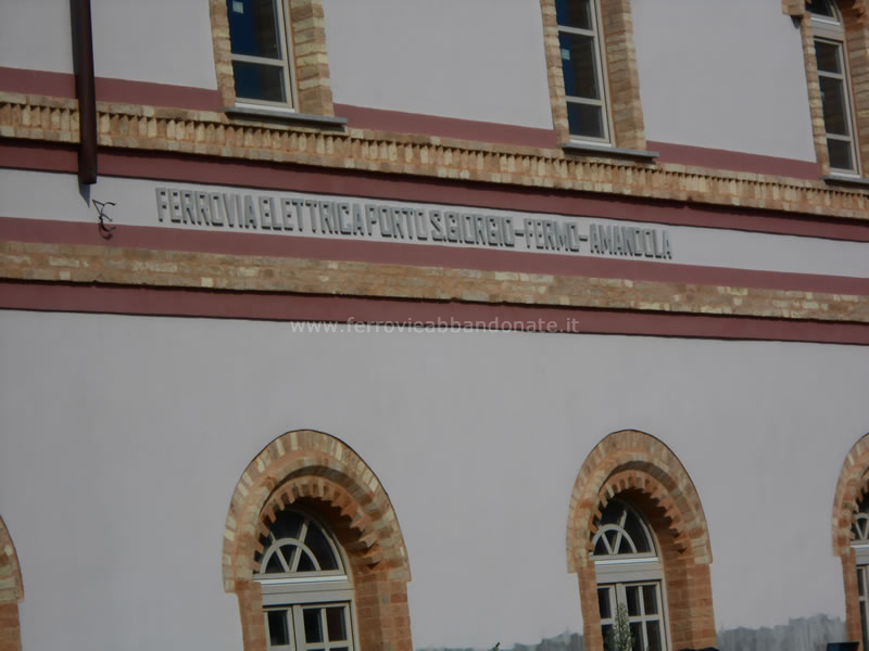 Particolare della ex-stazione di Porto S. Giorgio (FAA), con la denominazione della ferrovia di appartenenza ben conservata (M. Martelli, 2014)
