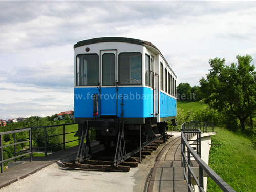 Elettromotrice della ex-ferrovia, restaurata ed esposta su un viadotto a Valdragone (R. Rovelli, 2010)