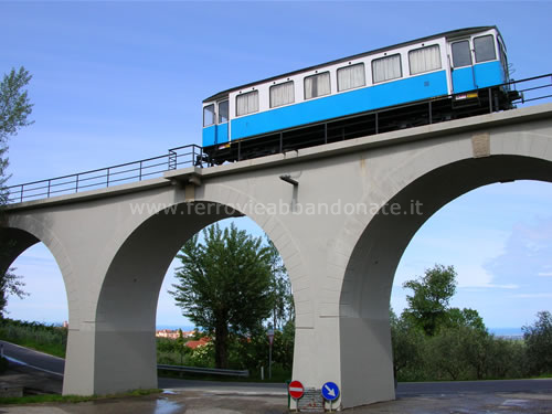Viadotto nei pressi di Valdragone, recentemente sistemato e utilizzato per l'esposizione di un'elettromotrice della ex-ferrovia (R. Rovelli, 2010)