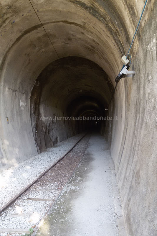 Interno della galleria Montale, nei pressi della stazione di S. Marino, al cui interno è stato ripristinato un breve tratto del binario (M. Martelli, 2015)