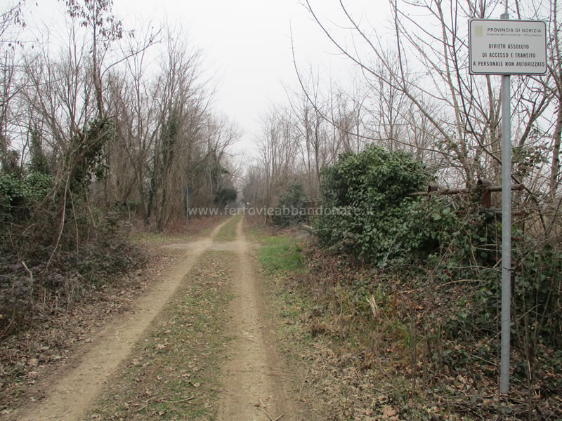 Ex-sedime nei pressi dell'interconnessione con la linea Udine-Trieste a Redipuglia. Il lungo viadotto terminale è stato demolito e sostituito dalla strada (M. Basso, 2022)