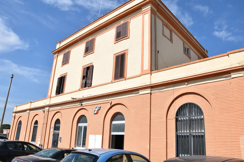 Fabbricato viaggiatori della stazione di Cerignola Campagna, tuttora in esercizio lungo la ferrovia Adriatica (A. Stigliani, 2023)