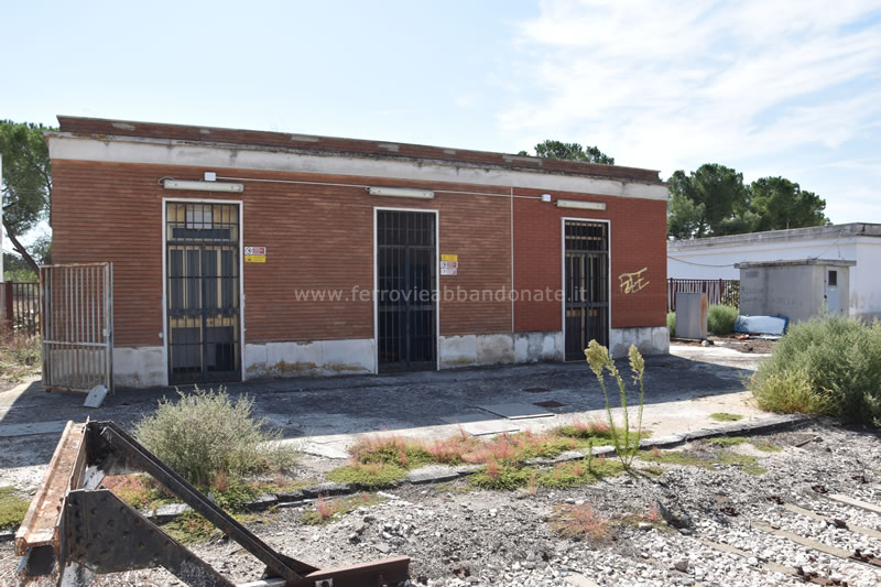 Fabbricato di servizio della stazione di Cerignola Campagna, nei pressi dell'inizio del binario per Cerignola (A. Stigliani, 2023)