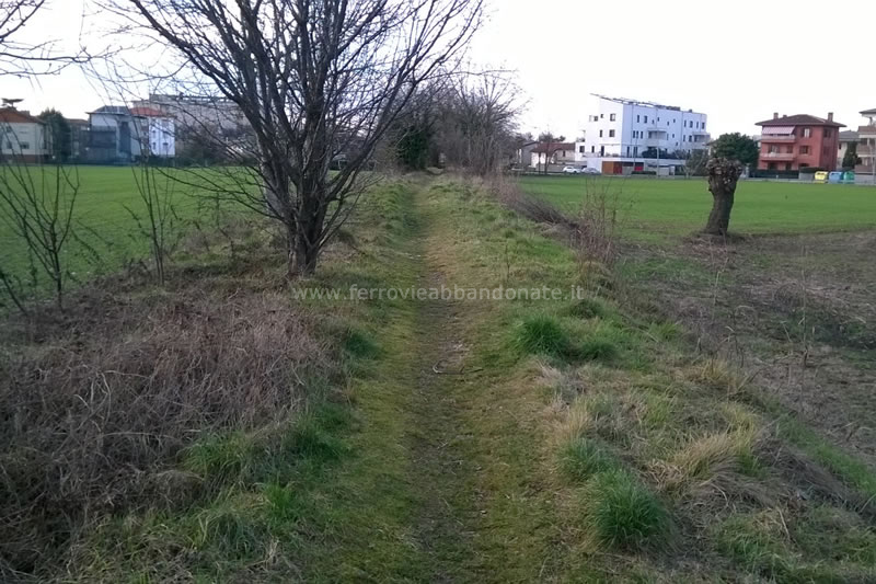 Rilevato ferroviario ancora riconoscibile alla periferia nord di Udine (S. Piani, 2018)