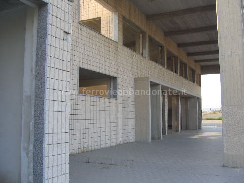 Particolare del fabbricato viaggiatori dell'incompiuta stazione di Matera La Martella (E. Tataranni, 2010)