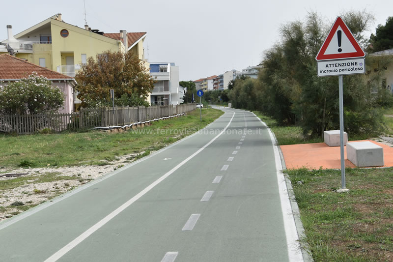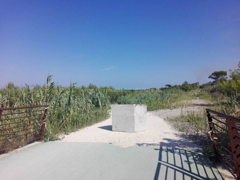 Termine della via verde realizzata sull'ex-sedime nei pressi di Casalbordino, vicino al punto in cui il tracciato dismesso confluisce in quello in esercizio. (M. Pagnanelli, 2019)