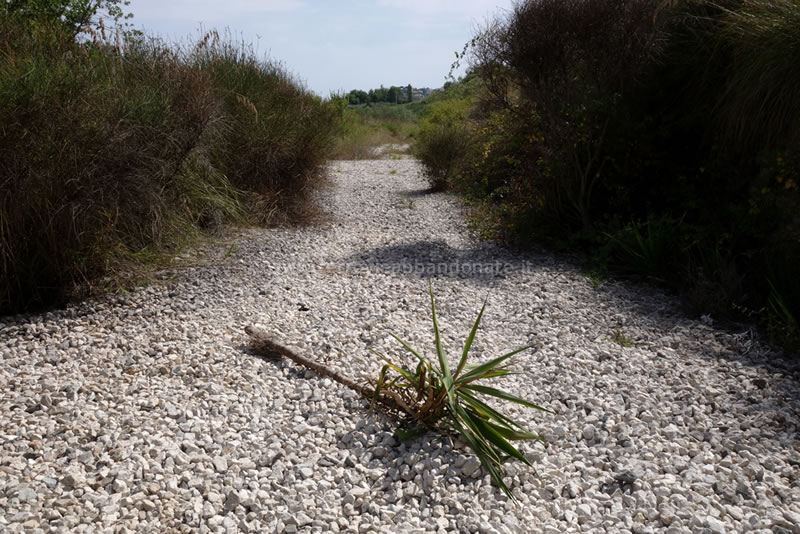 La massicciata ormai priva di binario nelle immediate vicinanze della costa (A. Cecere, 2008)