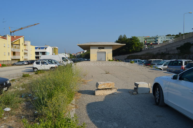 Altra immagine del piazzale della ex-stazione di Fossacesia, utilizzato come parcheggio per l'accesso alle vicine spiagge (G. Rovelli, 2012)
