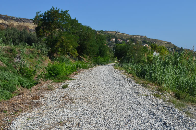 Ex-sedime nei pressi di Fossacesia, ormai privo di binario ma con la massicciata ancora ben evidente (G. Rovelli, 2012)