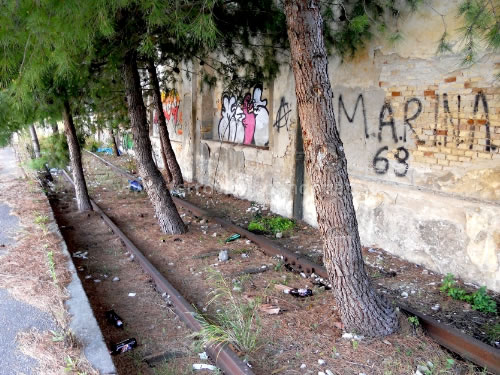 Binario morto della ex-stazione di Vasto, che riemerge tra il cemento (P. Chimisso, 2011)