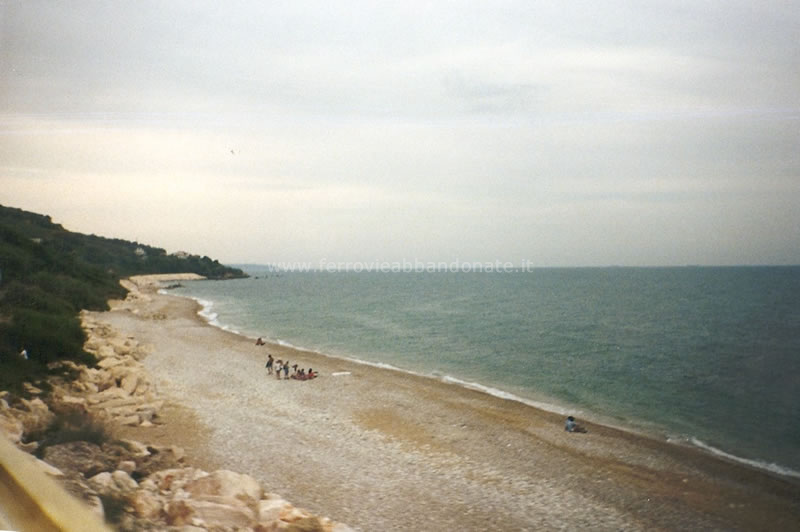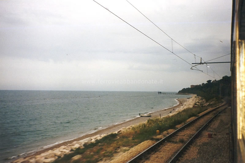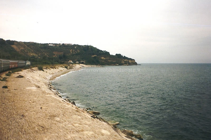 Vista dal treno in corsa nei pressi della punta di Acquabella, tra Ortona e S. Vito-Lanciano (G. Ciancaglini, 1998)