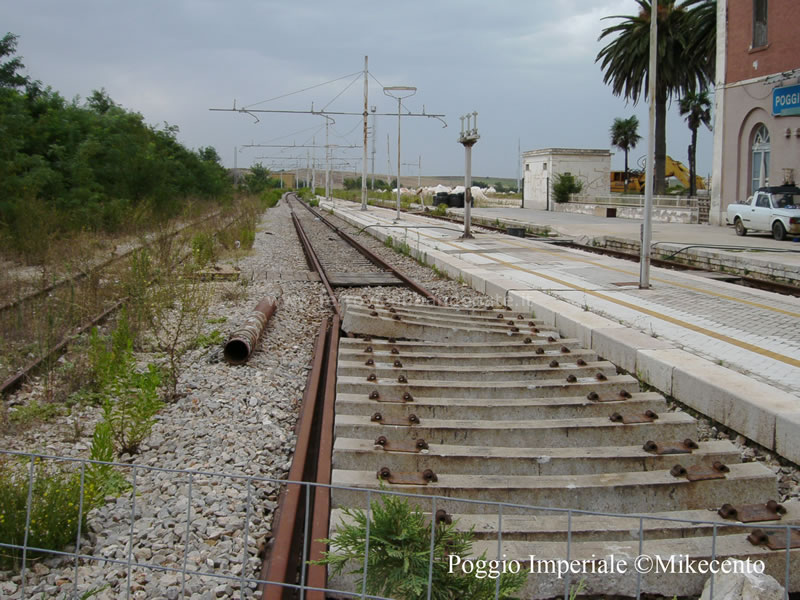 Sede ferroviaria, già priva del binario ma in discreto stato di conservazione, tra Lesina e Poggio Imperiale (M. Centonza, 2007)
