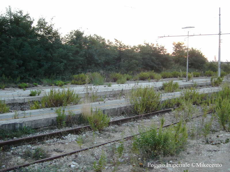 Ex-stazione di Poggio Imperiale, con la vegetazione spontanea in rapida crescita tra i marciapiedi (M. Centonza, 2007)